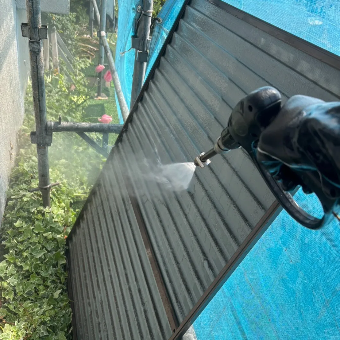 高圧洗浄によって、表面に付着した頑固な汚れやカビ、苔などをしっかりと取り除くことができます。これにより、次の工程で使用する塗料がしっかりと密着し、長持ちするようになります。