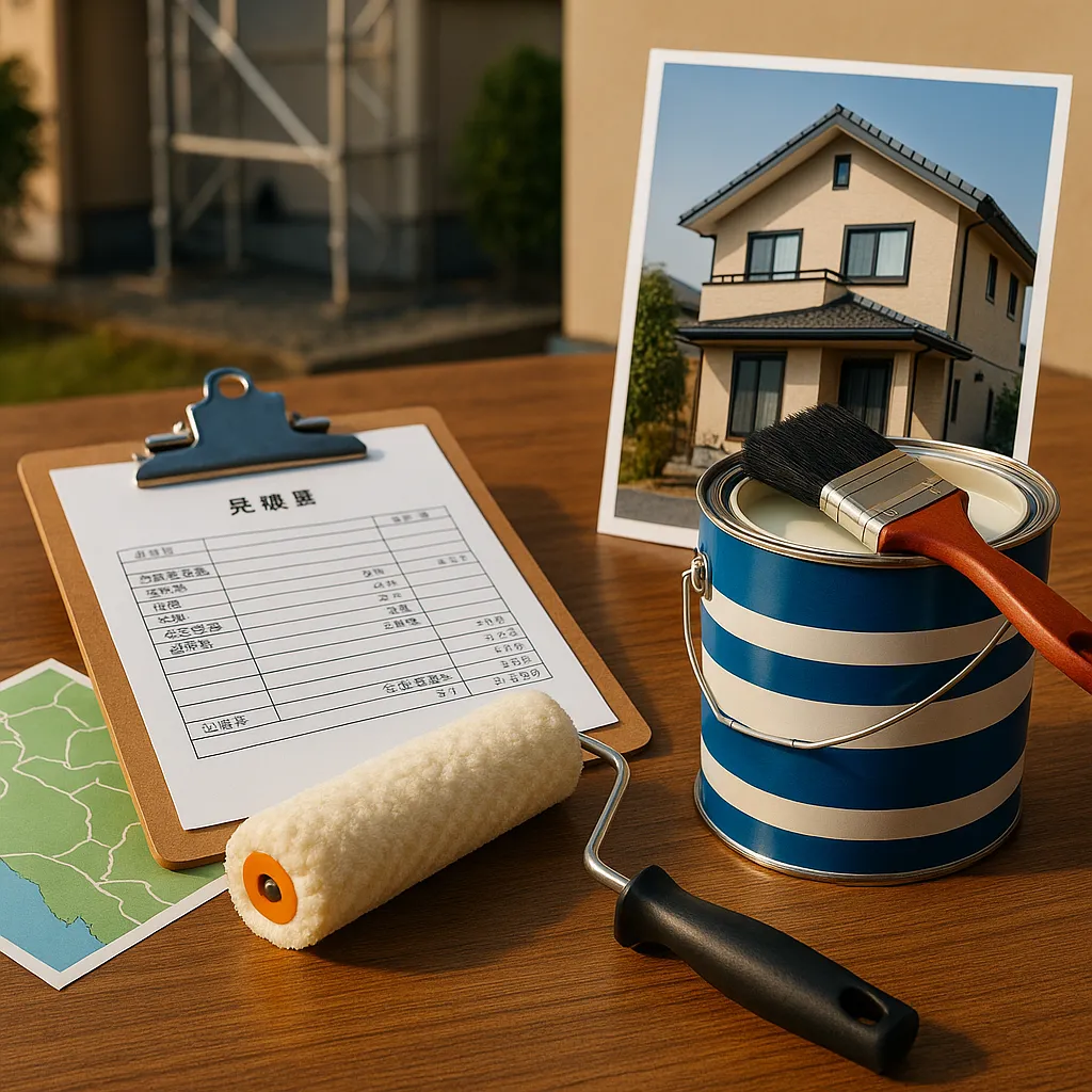 まずはヒアリング→現地診断→劣化箇所の共有→見積もり提示の順。見積もりでは、下地補修の範囲、使用塗料、塗布量、工程日数を明記してもらおう。電話相談や現場見積もりの活用で、後出し費用を避けやすくなる。ケーアイ美フォームでも無料診断と見積もりに対応し、内容の透明性を重視しとるで。