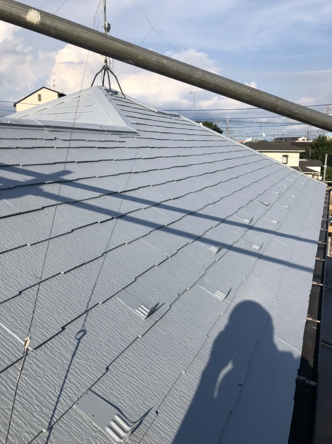 千葉県松戸市三矢小台 I様邸 屋根外壁塗装 2021年7月完工 AFTER BEFORE 【物件データ】外壁塗料メーカー SK化研商品名 弾性クリーンマイルドシリコン色 SR-109 屋根塗料メーカー 日本ペイント商品名 サーモアイSI色 クールライトグレー その他付帯工事 破風板・軒天井・ベランダ防水 地域 松戸市 屋根施工後① 屋根施工後② 破風板施工後 軒天井施工中 雨樋施工後 ベランダ防水施工後 戸袋施工後 外壁施工後➀ 外壁施工後②