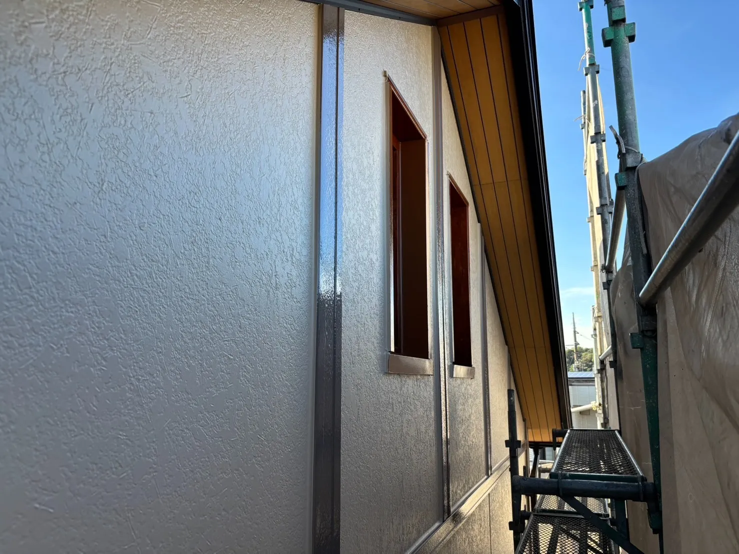 千葉県市川市真間 H様邸 外壁塗装工事 2025年7月完工 After Before 【物件データ】 外壁塗料メーカー 美ペイントシリーズ商品名 ケーアイ無機トップ3分艶 SC-23 屋根塗料メーカー商品名 その他付帯工事破風板・雨樋・窓枠・幕板・玄関ドア・土台水切り・コーキング 外壁施工後 外壁施工後 雨樋交換後 破風板施工後 縦樋施工後 幕板施工後 窓枠施工後 窓枠施工後 ウェザーカバー施工後 土台水切り施工後 ベランダ手摺施工後 玄関ドア施工後