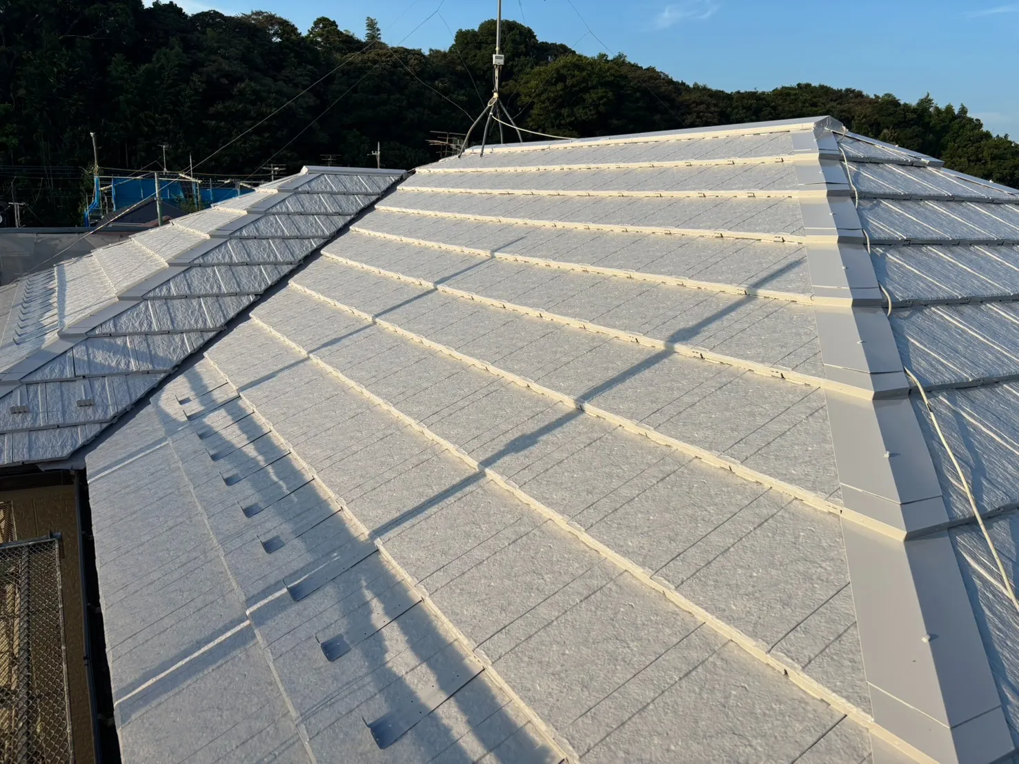 千葉県松戸市小金清志町 T様邸 屋根・外壁塗装工事 2025年8月完工 After Before 【物件データ】 外壁塗料メーカー SK化研商品名 弾性クリーンマイルドシリコン3分艶 25-60B 屋根塗料メーカー 日本ペイント商品名 サーモアイSi クールシルバーアッシュ その他付帯工事破風板・軒天井・雨樋・シャッターBOX・ベランダ防水・コーキング打ち替え 屋根施工後 外壁施工後 外壁施工後 軒樋施工後 破風板施工後 軒天井施工後 縦樋施工後 ベランダ防水施工後 シャッターBOX施工後 出窓上場施工後