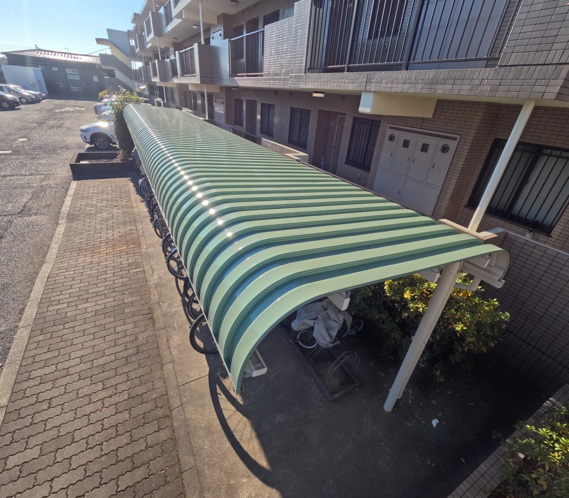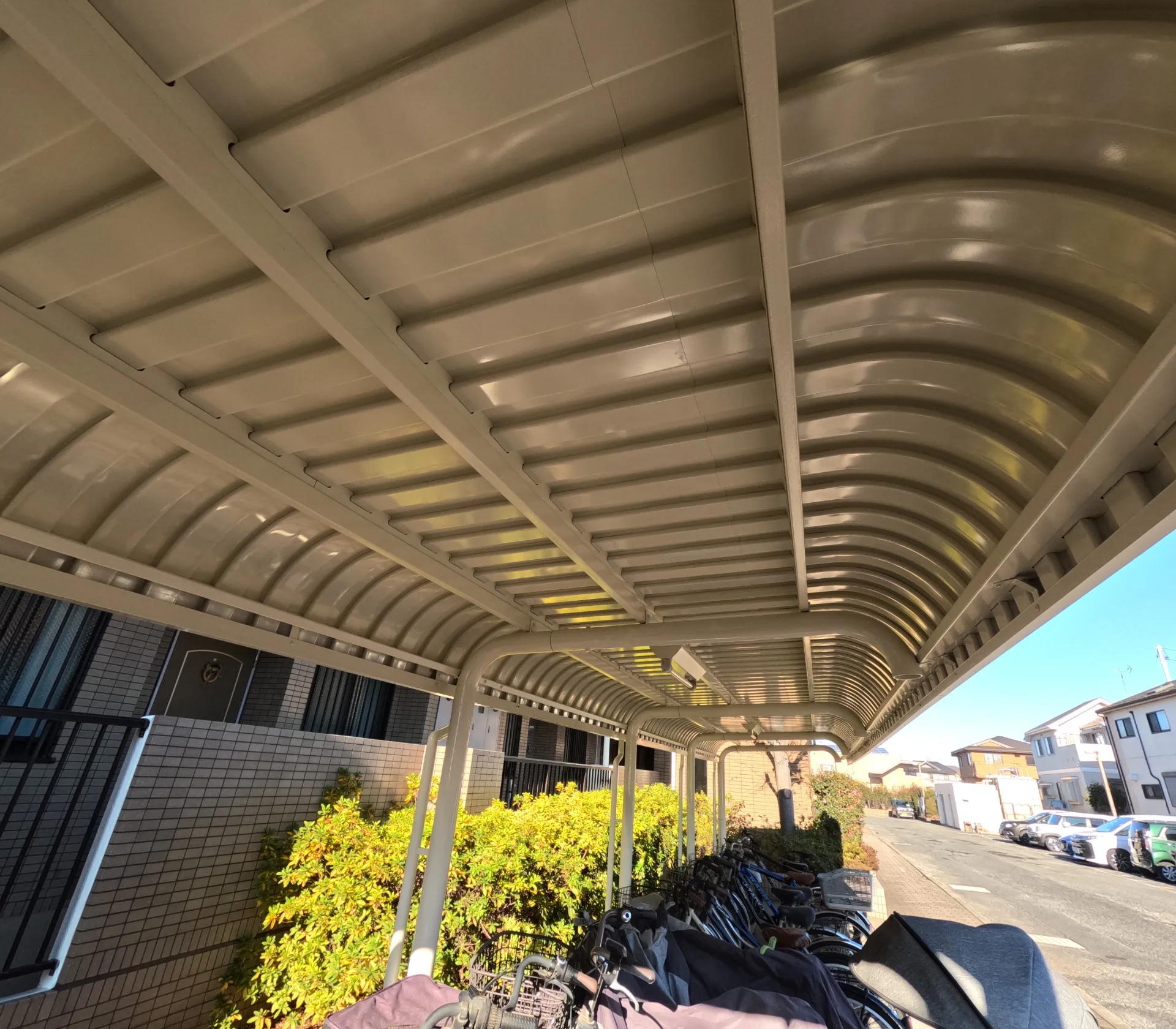 千葉県船橋市 Y様 駐輪場塗装工事 2026年1月完工 After Before 【物件データ】 屋根塗料メーカー SK化研商品名 クリーンマイルドシリコン 37-60D 屋根裏側塗料メーカー SK化研商品名 クリーンマイルドシリコンSR-163 その他付帯工事 屋根施工後 屋根裏側施工後 屋根裏側施工後 柱施工後